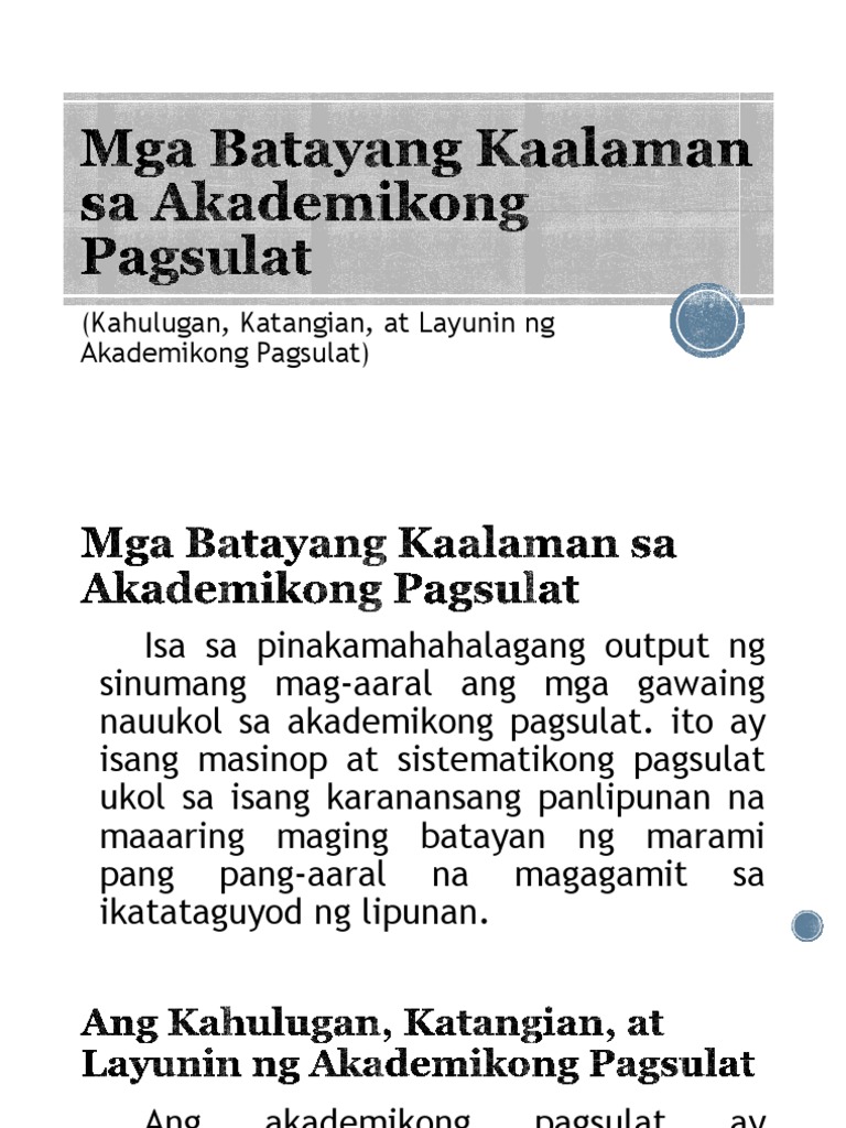 Mga Batayang Kaalaman Sa Akademikong Pagsulat Pdf