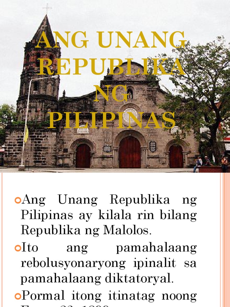 Unang Republika ng Pilipinas. Ito ang siyang bumuo ng Konstitusyong Malolos. Sino Ang Unang Pangulo Sa Republika Ng Pilipinas.